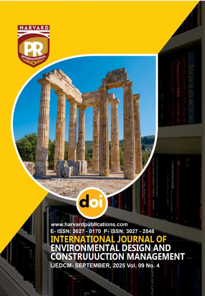 International Journal of Environmental Design and Construction Management is a peer-reviewed, open access journal dedicated to advancing knowledge and promoting research in the fields of sustainable design, environmental planning, and construction management. The journal serves as a platform for the dissemination of innovative practices, theoretical developments, and applied research relevant to professionals, scholars, and policymakers involved in the built environment and related disciplines.